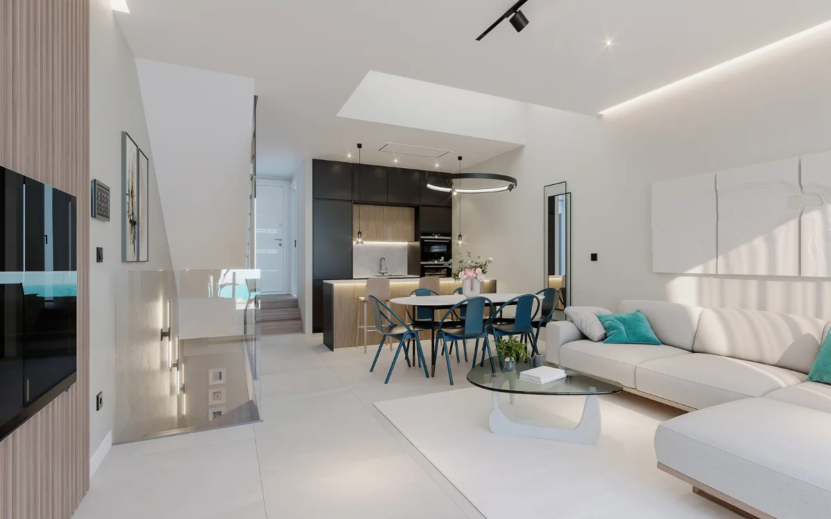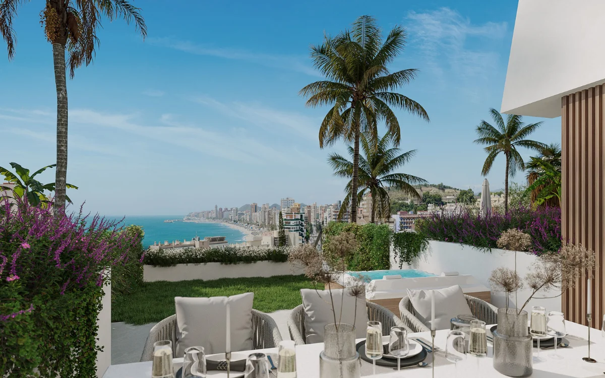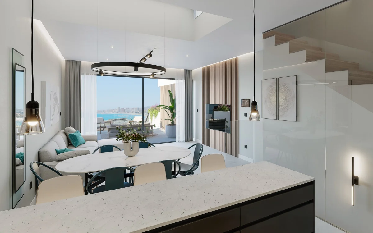 Elke woning in Azure Bay is een meesterwerk van modern design. De architectuur combineert strakke lijnen met natuurlijke materialen en veel licht. Hierdoor ontstaat een stijlvolle, warme sfeer waarin comfort centraal staat. Dankzij de verhoogde ligging geniet je vanaf elke verdieping van panoramisch uitzicht op zee en de kustlijn van Fuengirola.