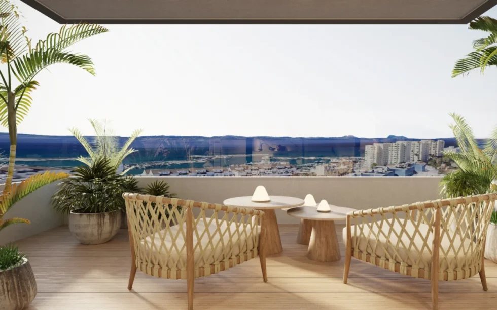 De ontwikkeling bestaat uit 22 exclusieve appartementen en penthouses met 2 en 3 slaapkamers, inclusief duplex- en triplexvarianten met ruime terrassen en uitzicht op zee. Elk appartement beschikt over een eigen parkeerplaats. De open woonruimtes, moderne keuken en grote ramen zorgen voor veel licht en een gevoel van ruimte. Op het dakterras bevindt zich een zwembad met solarium – de perfecte plek om te ontspannen onder de Spaanse zon.