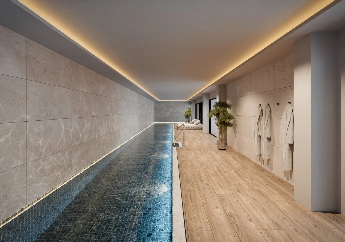 Soleil biedt faciliteiten die het dagelijks leven een vakantiegevoel geven: een infinity buitenzwembad, binnenzwembad, spa met Turks stoombad, moderne fitnessruimte, coworkingruimte, lounge voor bewoners en een stijlvolle poolbar. Alles is ontworpen om welzijn, ontspanning en productiviteit te combineren in één verfijnde leefomgeving.